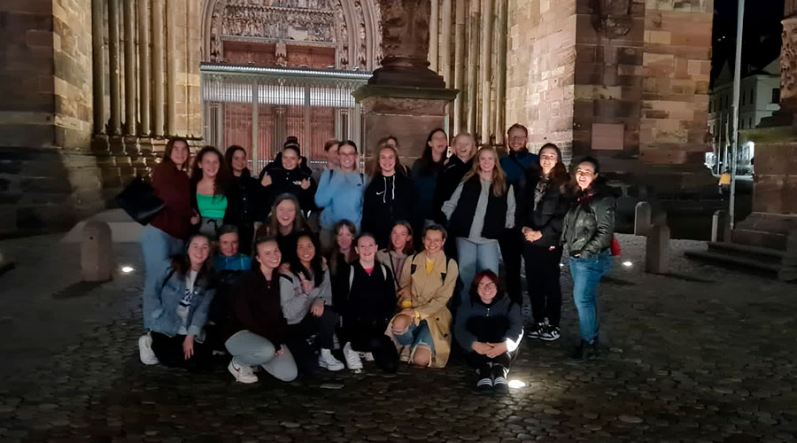 Apropos ausländische Luft. Am nächsten Tag machten wir uns auf den Weg nach Straßburg. Voller Aufregung und Nervosität darüber, ob die Franzosen denn auch Englisch sprechen (leider nein), und welche alltäglichen Wörter man denn noch auf Französisch hinbekommen würde. Nach einer interessanten Stadtführung bekamen wir sechs Stunden Zeit, um Straßburg auf eigene Faust zu erkunden. Mehrere Stunden und ein paar unverständliche, aber lustige Interaktionen mit Franzosen später, trafen wir uns alle am Busparkplatz, da wir noch einmal gemeinsam essen wollten. Gegen 21 Uhr ging es erschöpft, aber glücklich zum Hotel zurück.