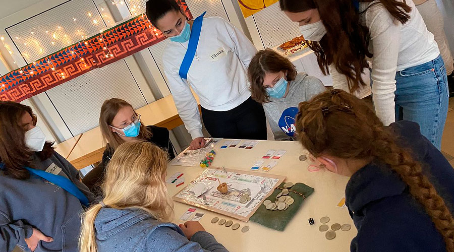 Spielen ist eine Tätigkeit, die man nicht ernst genug nehmen kann! 13 Schülerinnen des P-Seminars haben bekannte Spiel mit antikem Inhalt gefüllt und einen Spiele -Vormittag für die Lateinschülerinnen der 7. Jahrgangsstufe gestaltet. Somit vergnügten sich die Schülerinnen in zwei Gruppen, die sich in unserer altehrwürdigen Bibliothek folgende neue Klassiker vorstellten und natürlich gleich ausprobieren konnten: