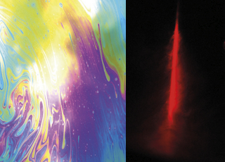 Ein „branched flow“ ist ein Laserstrahl (eine elektromagnetische Welle) der sich innerhalb eines Seifenfilms aufspaltet. Es entstehen Kanäle von großer Intensität die den Zweigen eines Baumes ähneln.